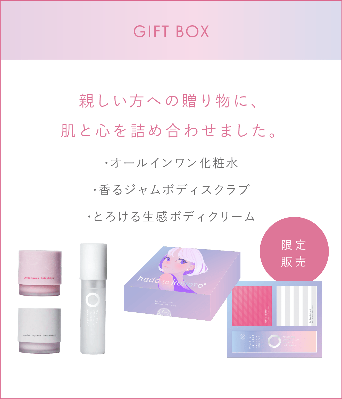 肌にのせると、ふんわりやわらかなスフレ感。スーッととろけるように伸び広がって、ベタつくことなく全身にうるおいを届けます。触るのがうれしくなるほど、もっちりとやわらかな肌へ。