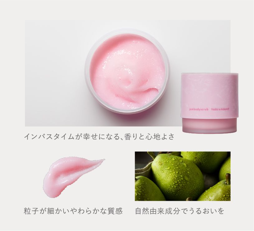 粒子が細かく肌にやさしいシュガースクラブが、おだやかに角質をオフ。全身にうるおいを与えながらすっきり洗いあげて、透明感のあるなめらかな肌へ導きます。